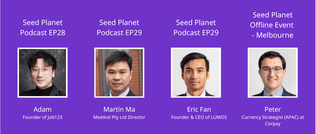 🎙️ 不要錯過 Seed Planet 播客的第 28 和 29 集,其中包括行業領袖 Job123 創始人 Adam 和 Meetkol Pty 總監 Martin Ma。